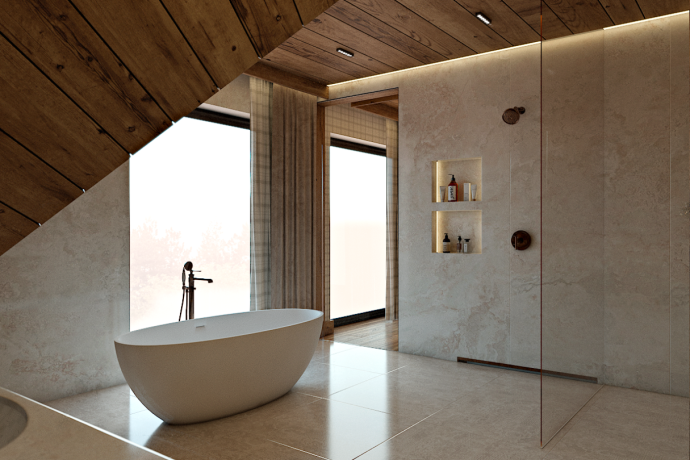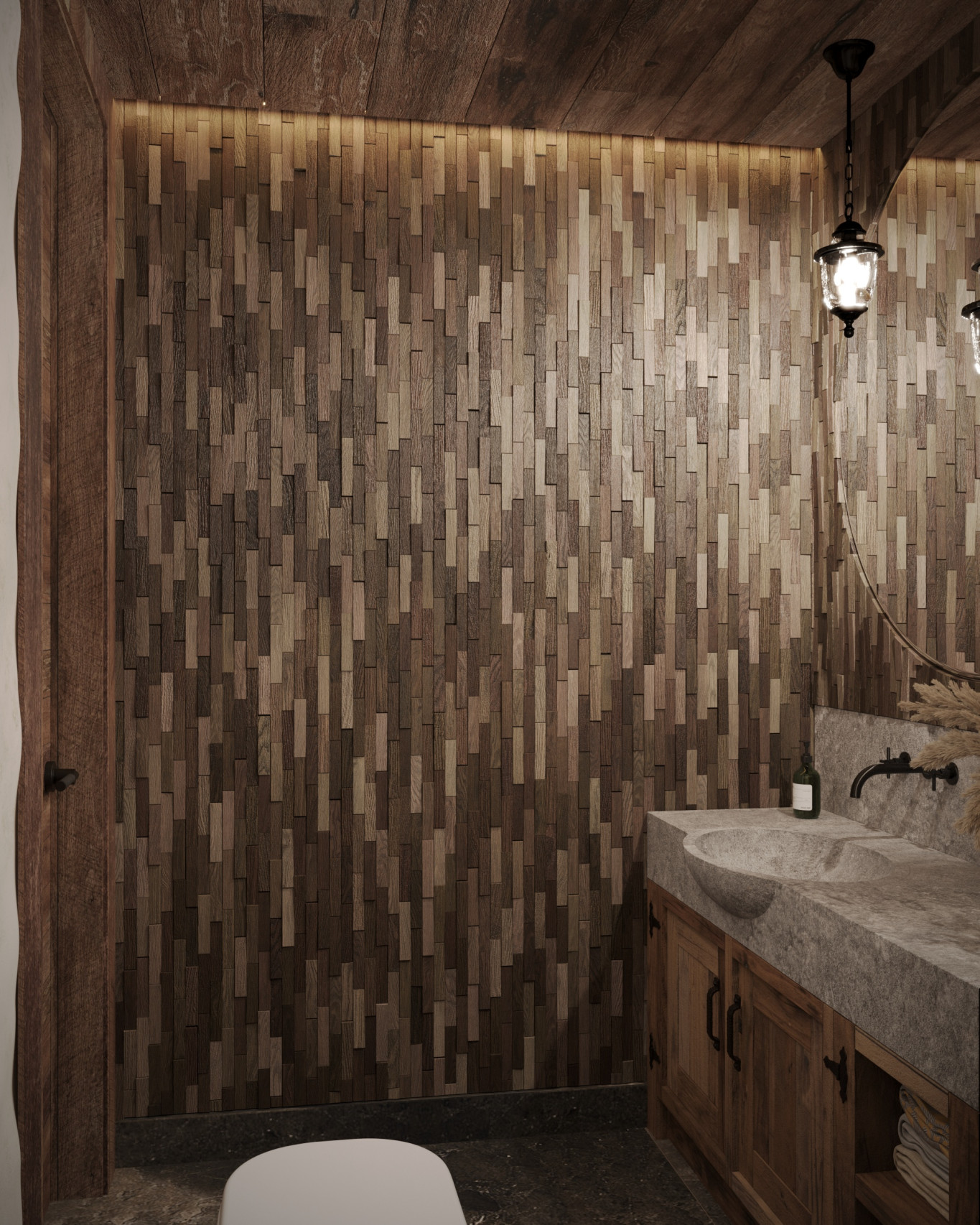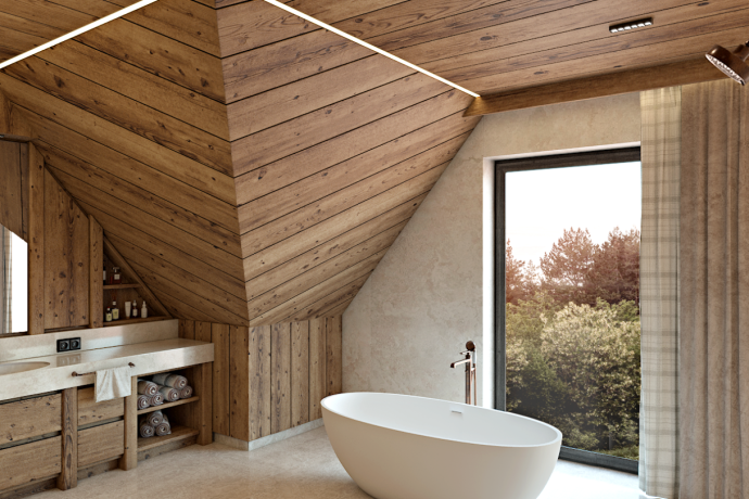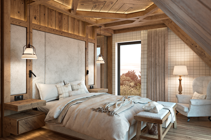 Celem projektu , było stworzenie miejsca , które amanuje ciepłem i przytulnością. W projekcie, użyto drewna z odzysku, któremu nadano drugie życie. To dom , z duszą , którego design nigdy się nie zestarzeje. Architektura wnętrz, jest dopełnieniem przemyślanej kubatury obiektu. Panoramiczne okna, pozwalają, otworzyć się na otaczającą przyrodę, natomiast antresola tworzy efekt przestrzeni. To dom, który otula. Przytulny ale nowoczesny , spokojny ale z charakterem.