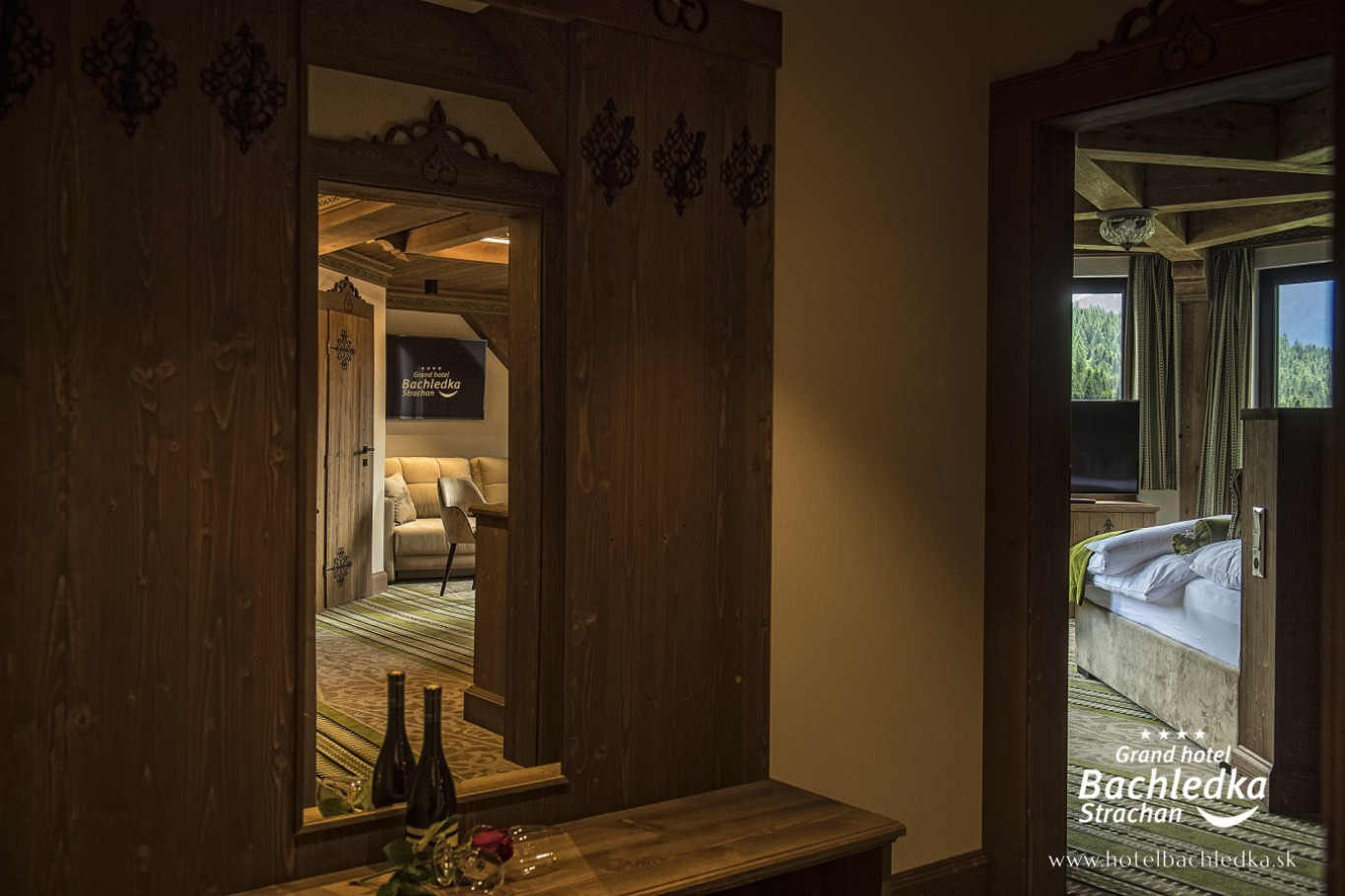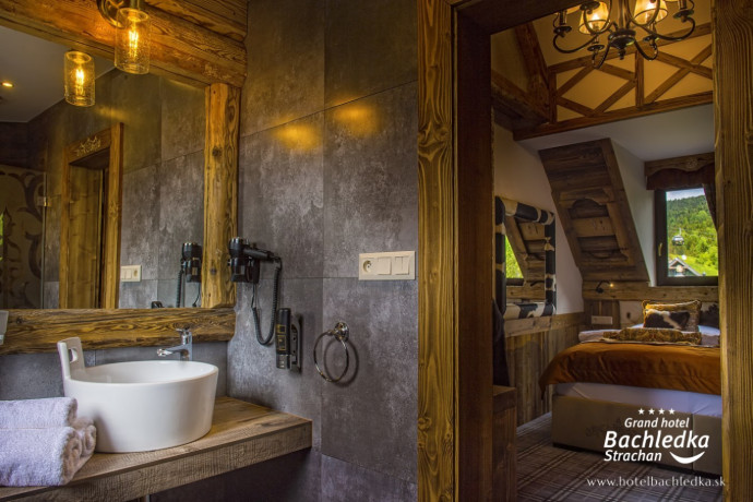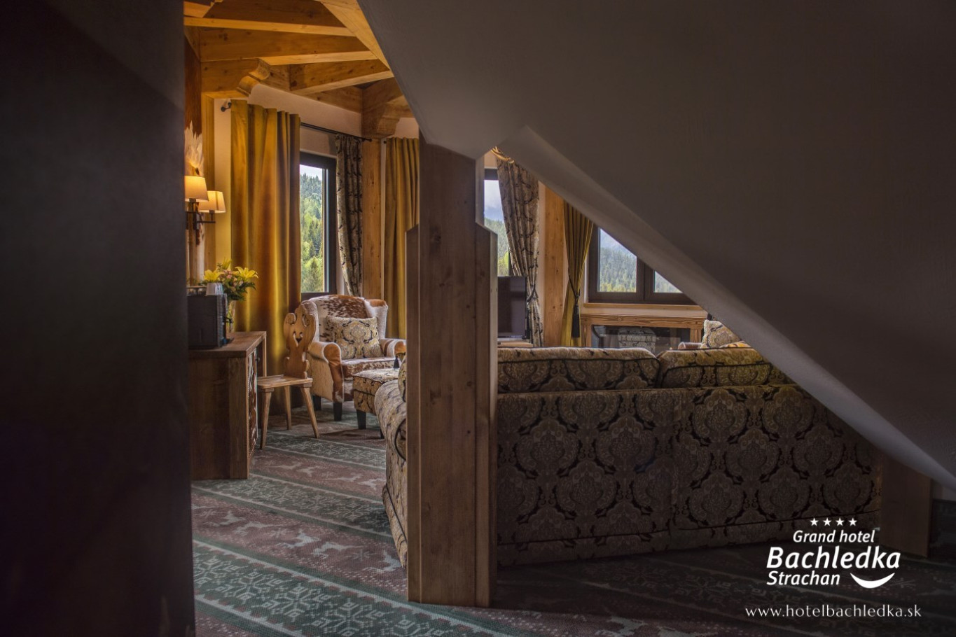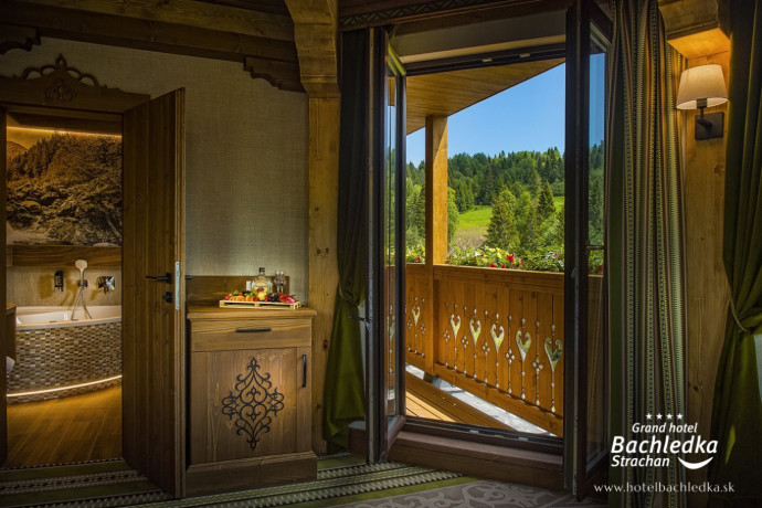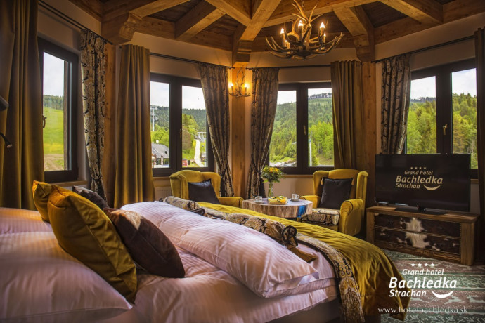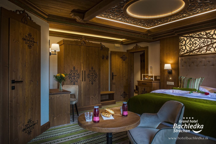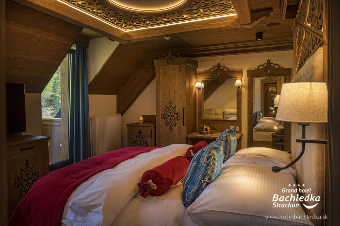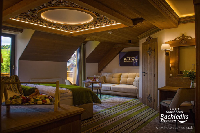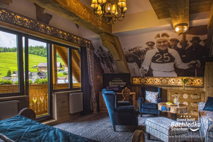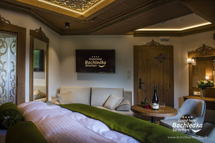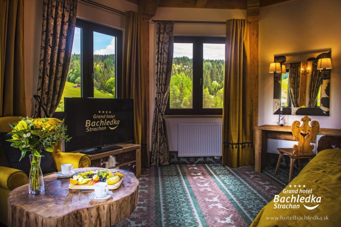 Niebanalne wnętrza, główna ideą było pokazanie Tradycyjnych Zdziarskich detali. Projektowane, na wzór Słowackich chodników – wykładziny i zasłony, kunszt zdobniczy, ukłon w stronę tradycji. Basen, strefa spa, tematyczne pokoje, zjawiskowa restauracja i klimatyczne spa przy tak pięknej lokalizacji tworzą spektakularny efekt. www.hotelbachledka.sk