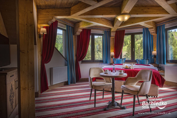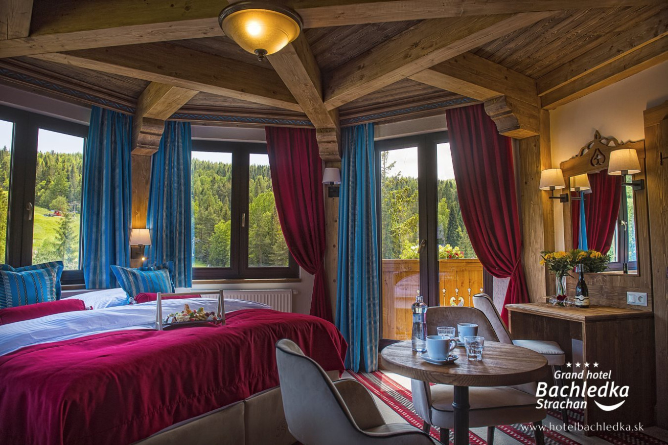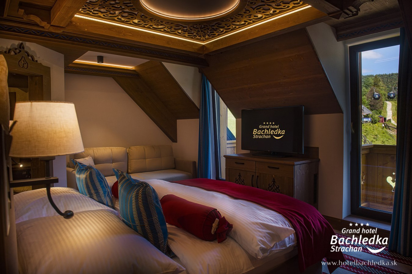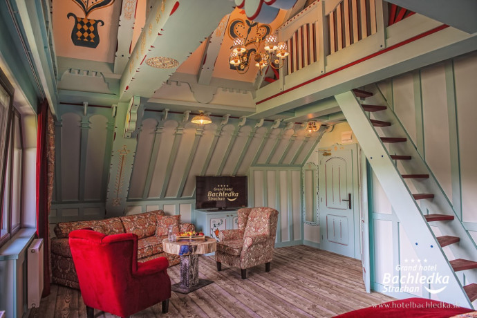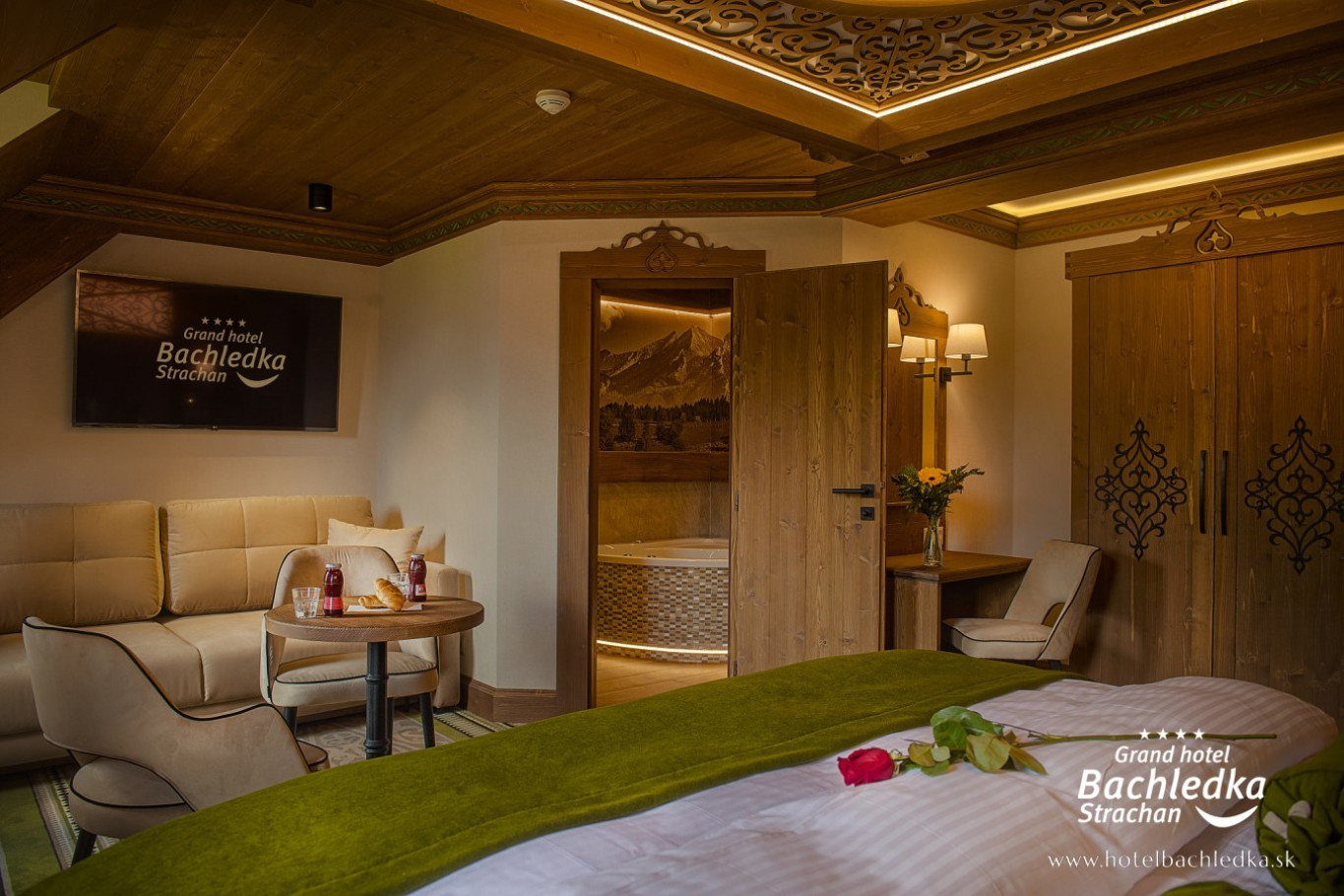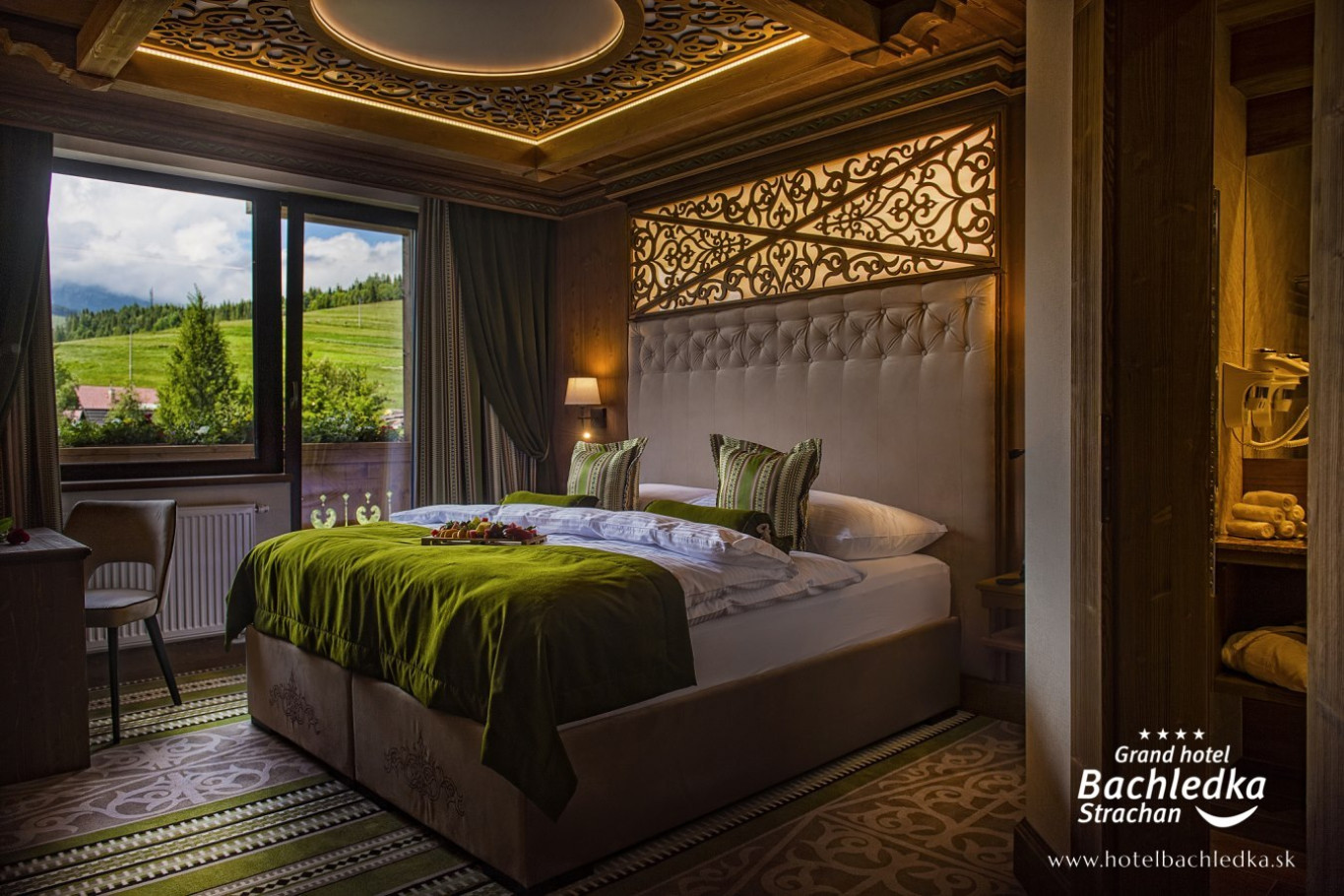 Niebanalne wnętrza, główna ideą było pokazanie Tradycyjnych Zdziarskich detali. Projektowane, na wzór Słowackich chodników – wykładziny i zasłony, kunszt zdobniczy, ukłon w stronę tradycji. Basen, strefa spa, tematyczne pokoje, zjawiskowa restauracja i klimatyczne spa przy tak pięknej lokalizacji tworzą spektakularny efekt. www.hotelbachledka.sk