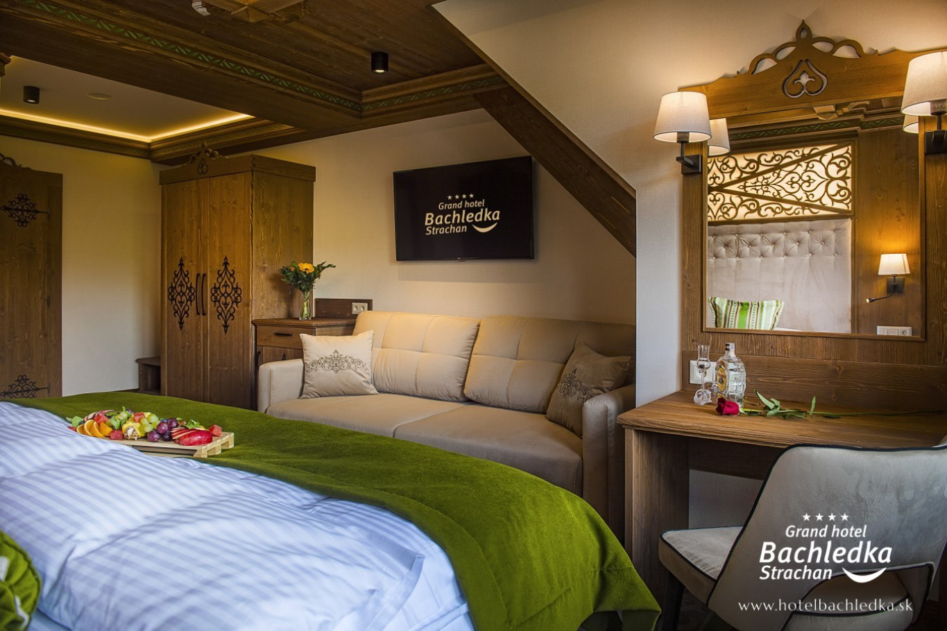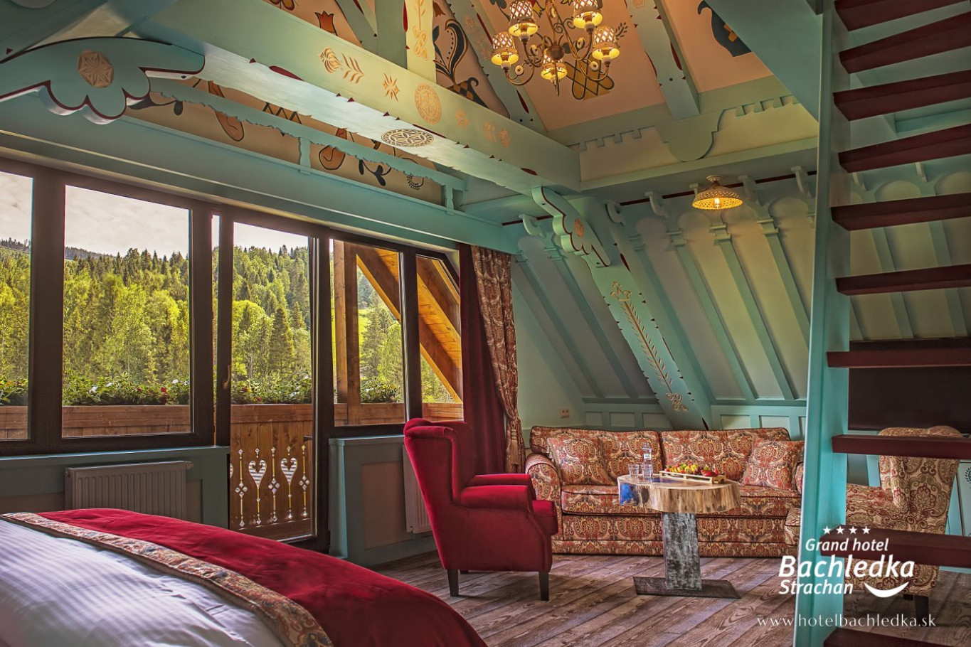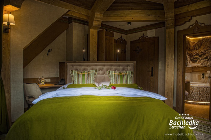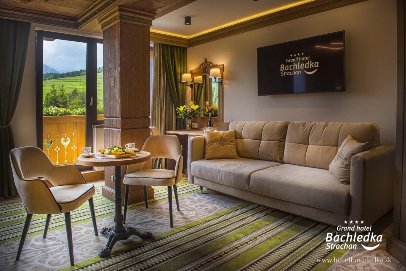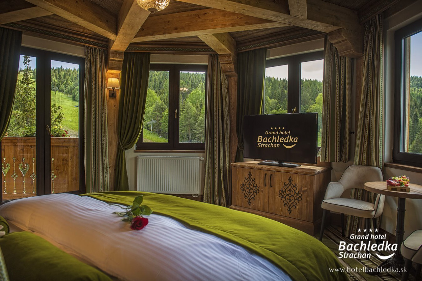 Niebanalne wnętrza, główna ideą było pokazanie Tradycyjnych Zdziarskich detali. Projektowane, na wzór Słowackich chodników – wykładziny i zasłony, kunszt zdobniczy, ukłon w stronę tradycji. Basen, strefa spa, tematyczne pokoje, zjawiskowa restauracja i klimatyczne spa przy tak pięknej lokalizacji tworzą spektakularny efekt. www.hotelbachledka.sk