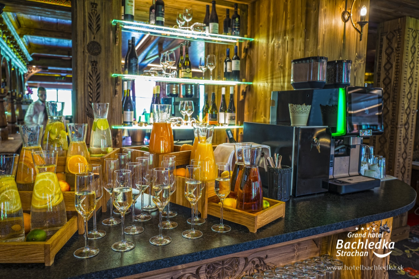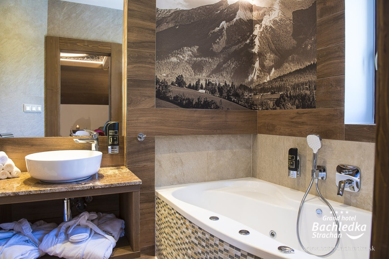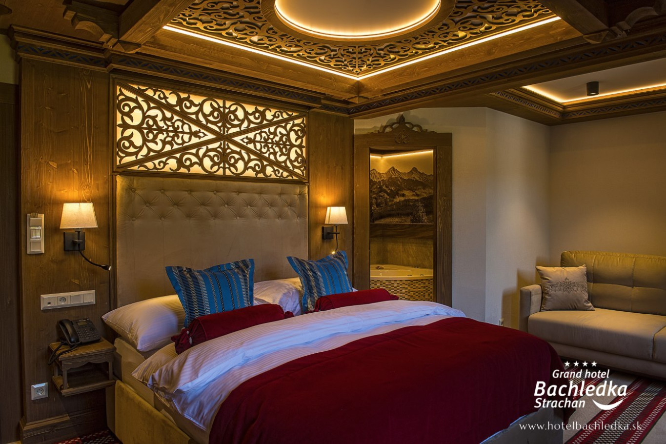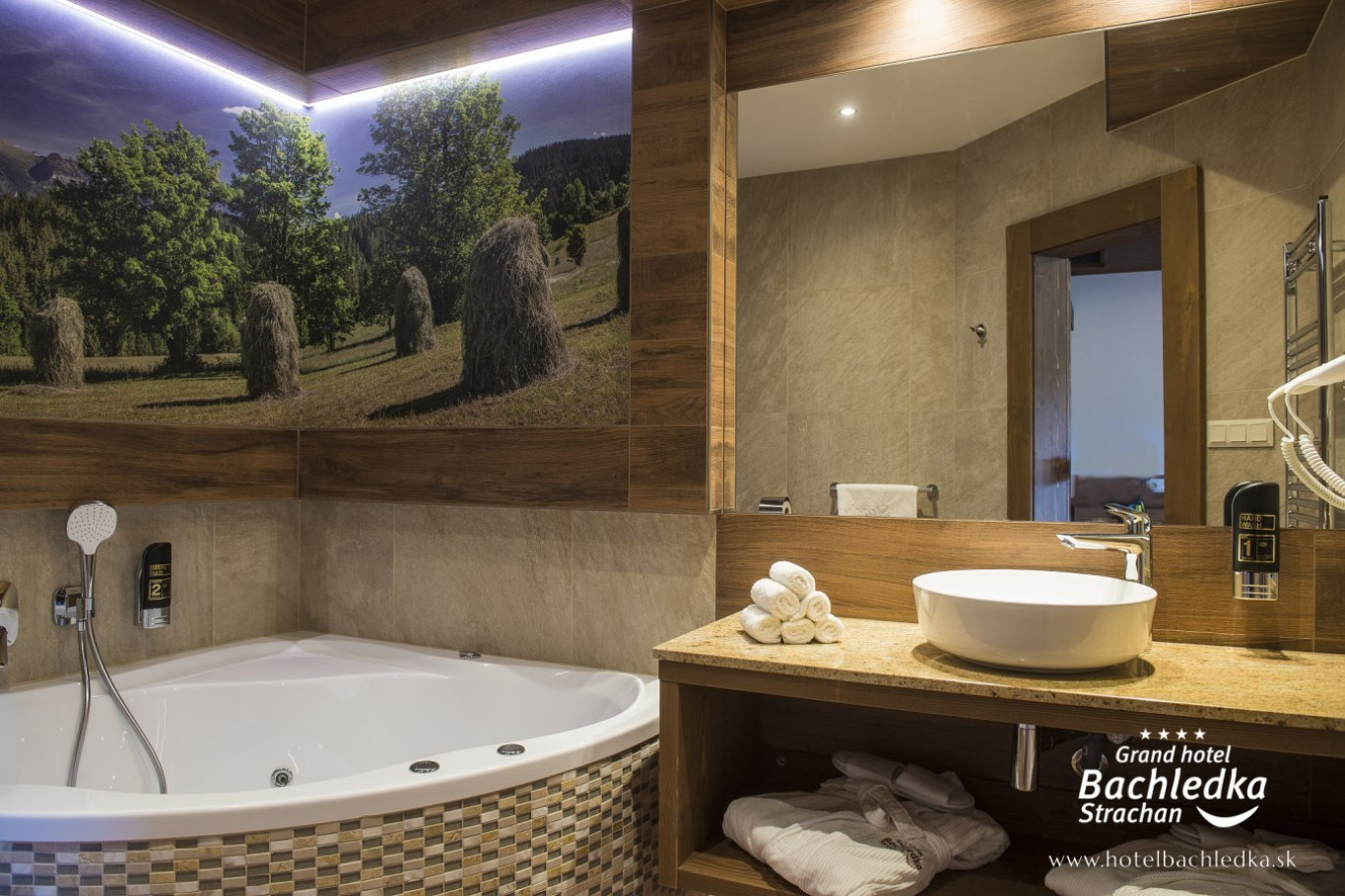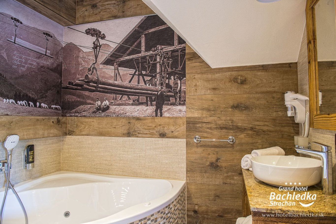 Niebanalne wnętrza, główna ideą było pokazanie Tradycyjnych Zdziarskich detali. Projektowane, na wzór Słowackich chodników – wykładziny i zasłony, kunszt zdobniczy, ukłon w stronę tradycji. Basen, strefa spa, tematyczne pokoje, zjawiskowa restauracja i klimatyczne spa przy tak pięknej lokalizacji tworzą spektakularny efekt. www.hotelbachledka.sk