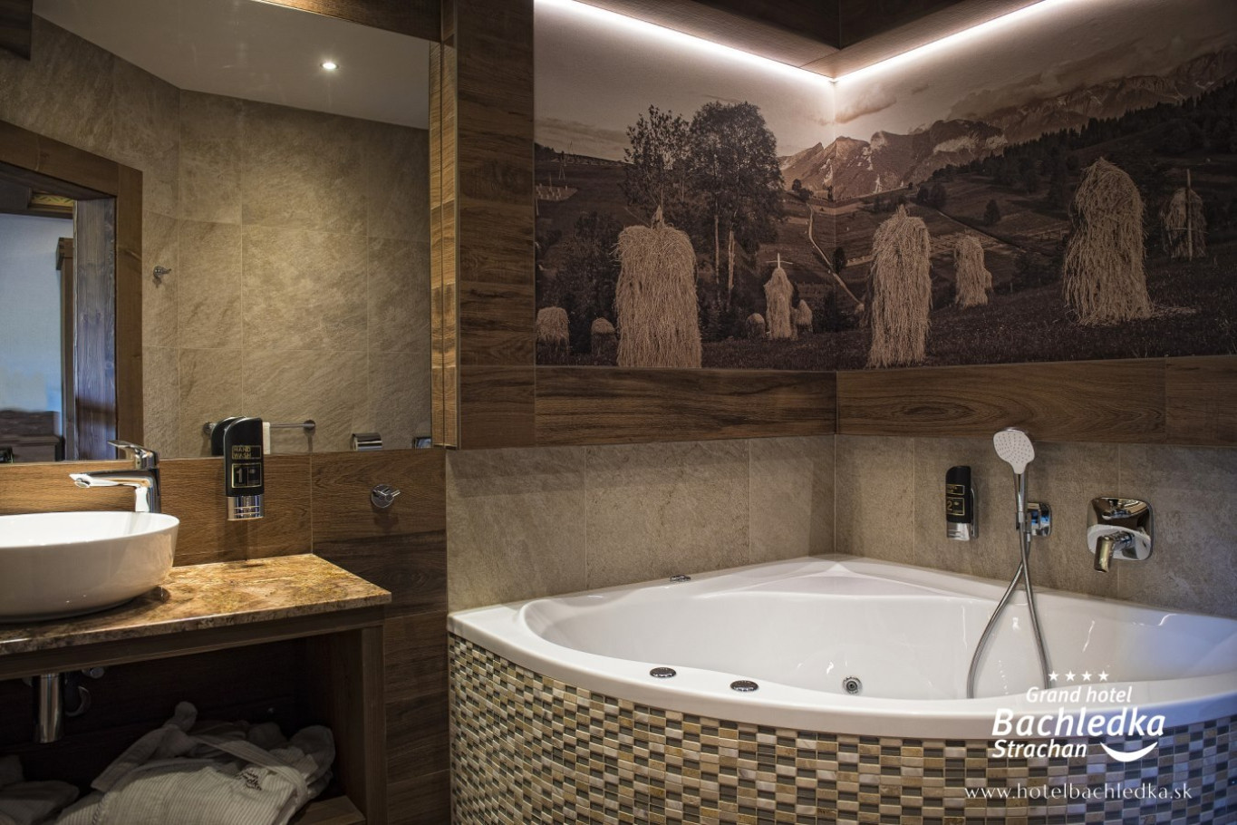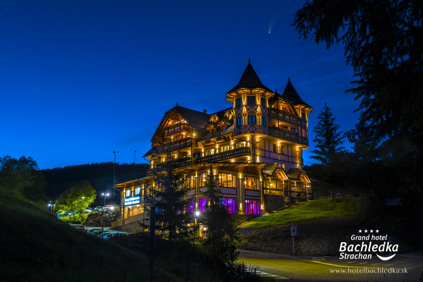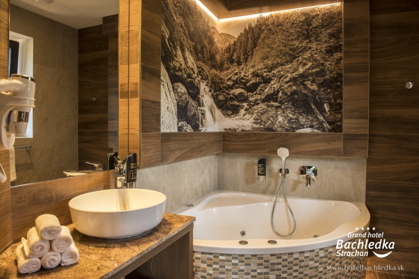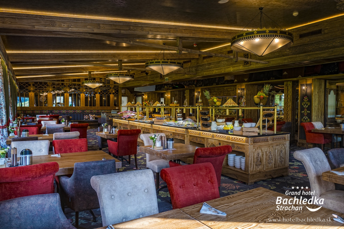 Niebanalne wnętrza, główna ideą było pokazanie Tradycyjnych Zdziarskich detali. Projektowane, na wzór Słowackich chodników – wykładziny i zasłony, kunszt zdobniczy, ukłon w stronę tradycji. Basen, strefa spa, tematyczne pokoje, zjawiskowa restauracja i klimatyczne spa przy tak pięknej lokalizacji tworzą spektakularny efekt. www.hotelbachledka.sk