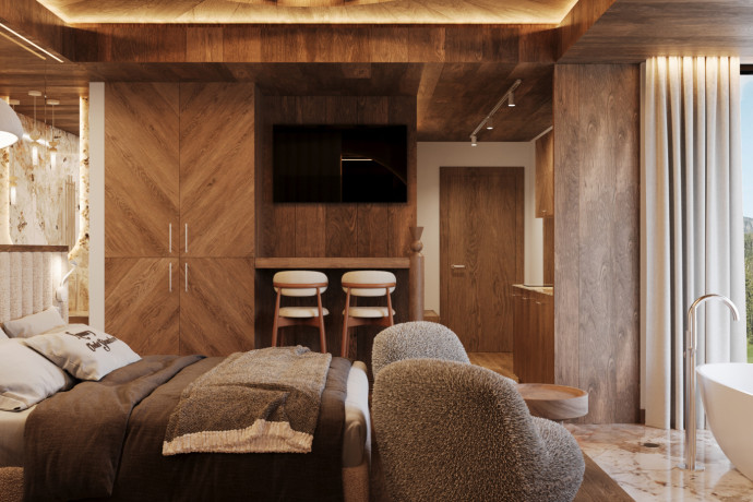 W tym projekcie, głównym celem było połączenie tradycyjnych akcentów wraz z nowoczesnymi rozwiązaniami, zachowując przy tym unikalny klimat Chaletu. Projekt miał przyciągać designem, jak również wpisywać się w charakter miejsca w którym się znajduje.