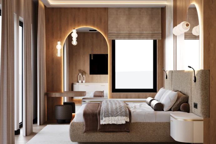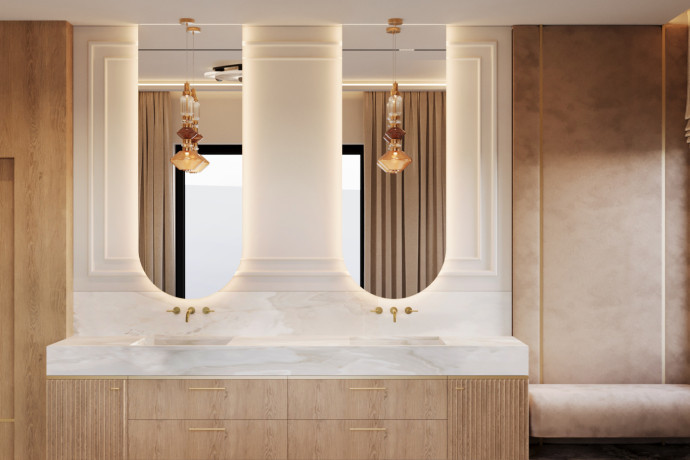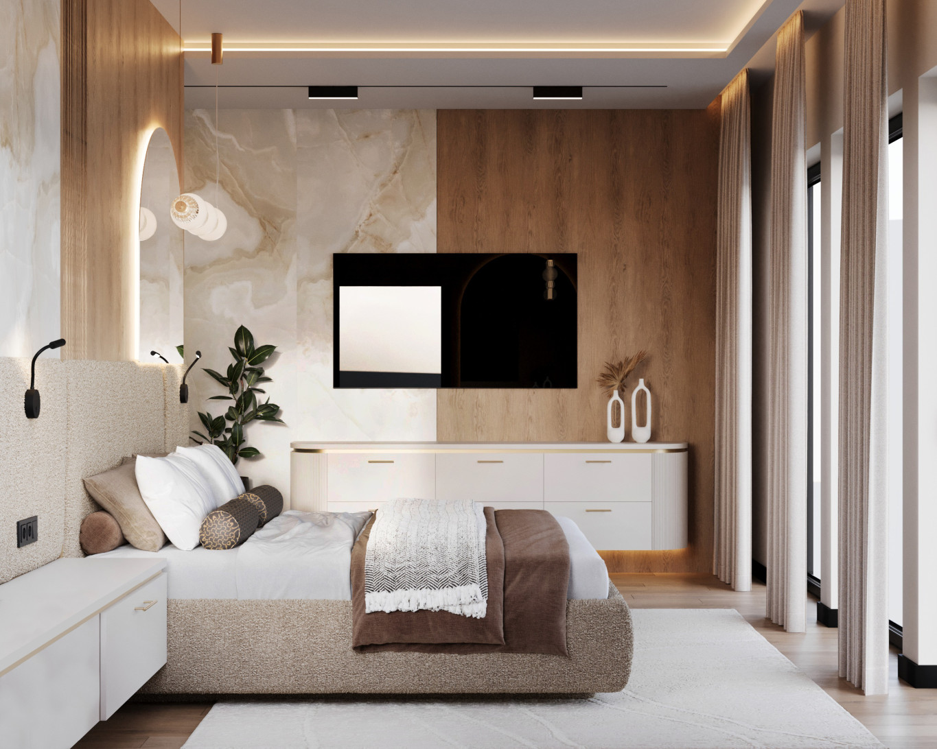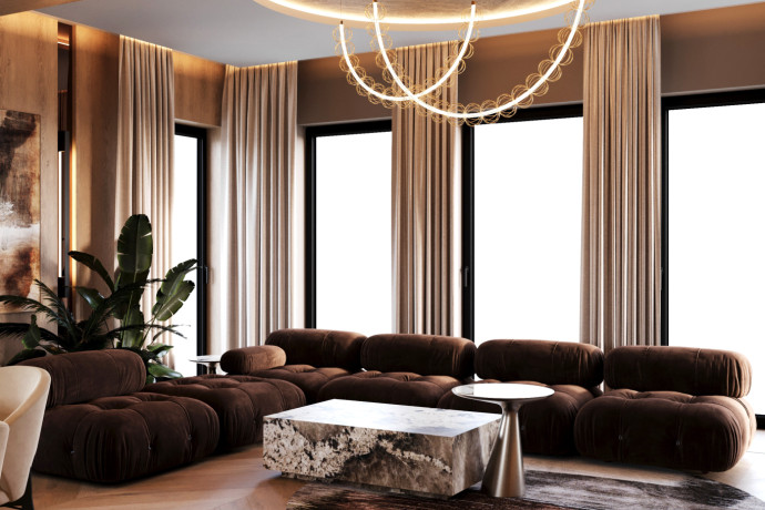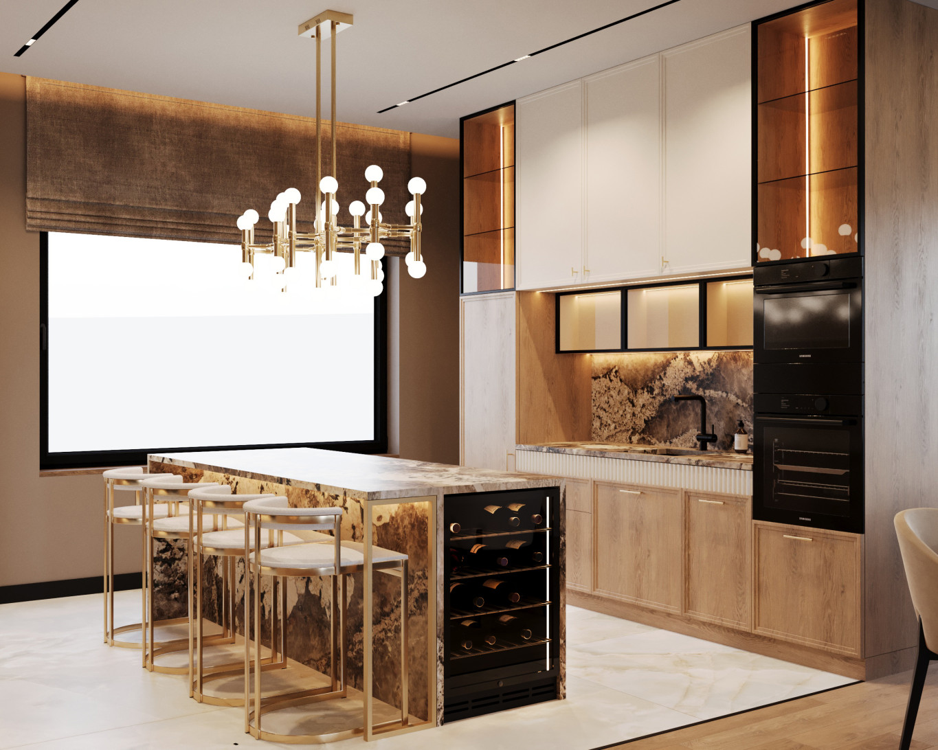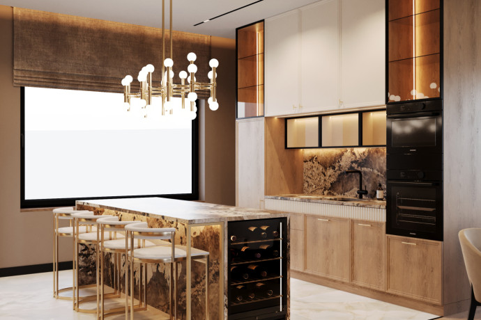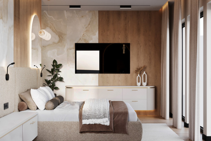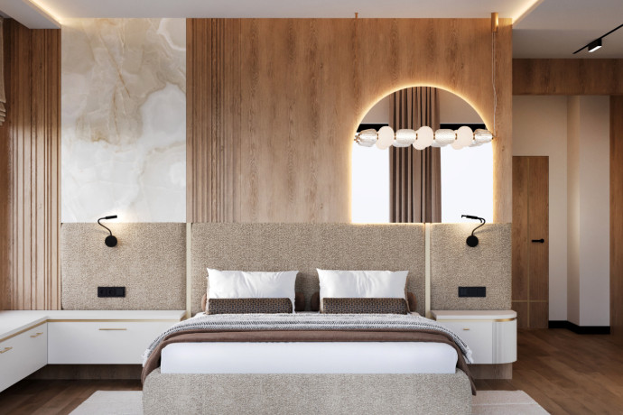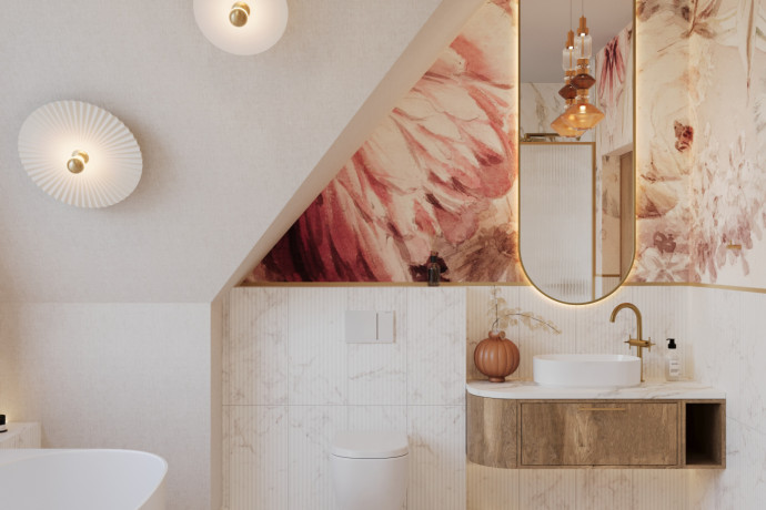 W tym projekcie kluczową rolę odgrywają materiały, światło i detal. To wnętrze stworzone z myślą o codziennym komforcie, ponadczasowej estetyce i designie. Każde z pomieszczeń ma swój unikalny charakter, designerskie lampy podkreślają eleganckich styl wnętrz. Kamienne akcenty, dodają wyrafinowanego uroku, przełamując przytulność drewna.