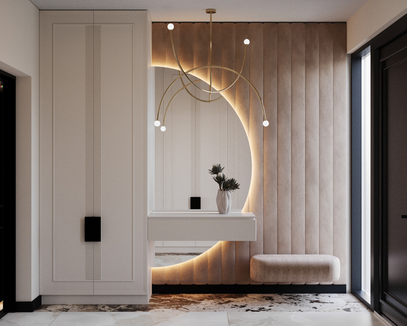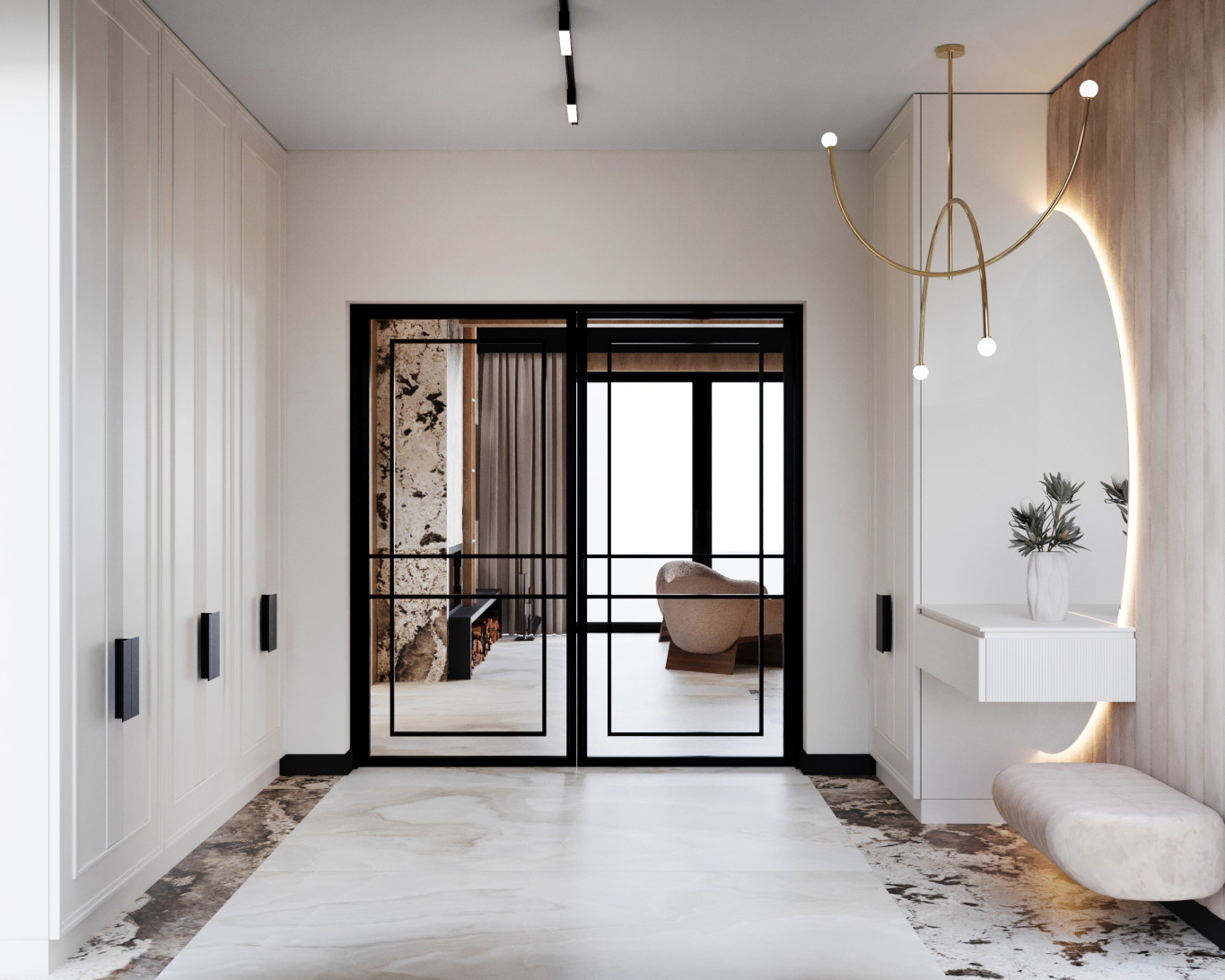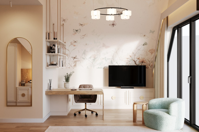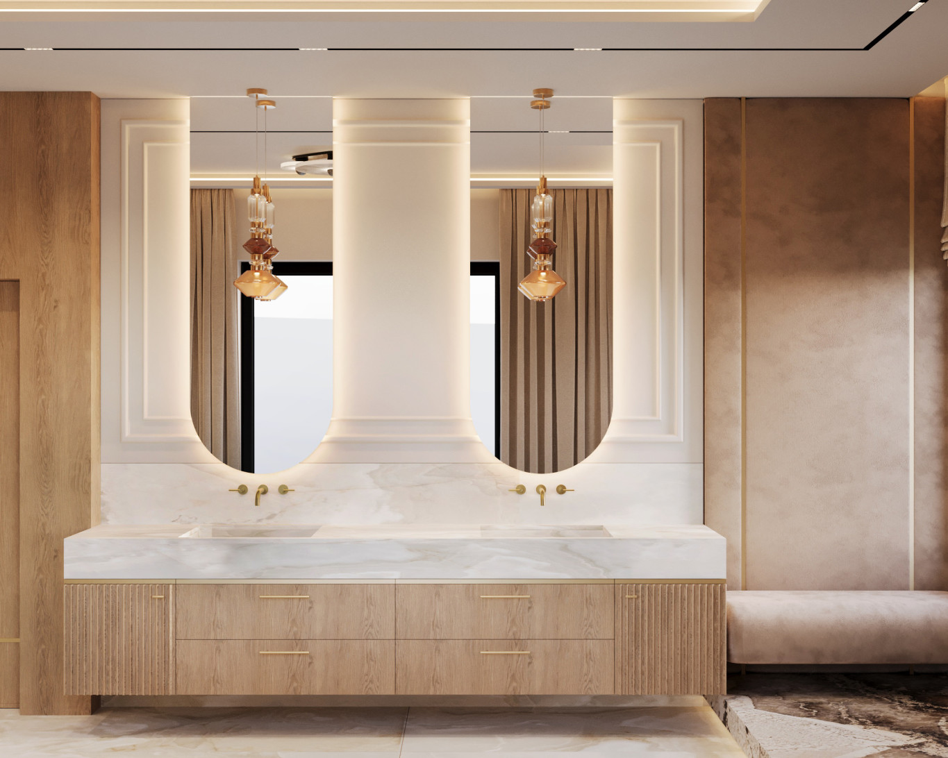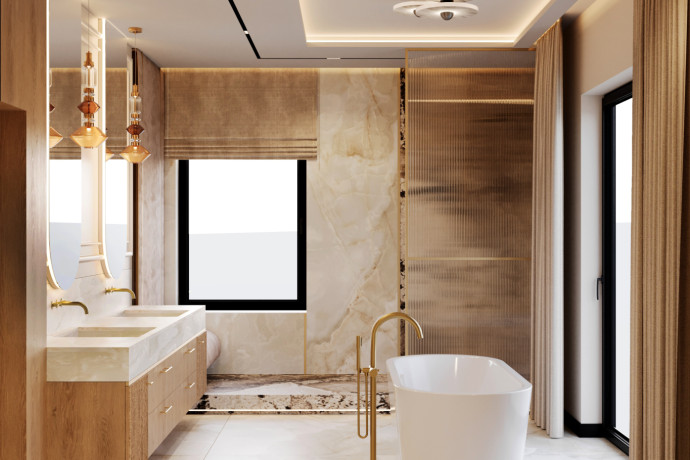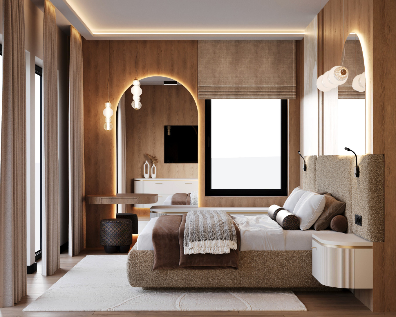 W tym projekcie kluczową rolę odgrywają materiały, światło i detal. To wnętrze stworzone z myślą o codziennym komforcie, ponadczasowej estetyce i designie. Każde z pomieszczeń ma swój unikalny charakter, designerskie lampy podkreślają eleganckich styl wnętrz. Kamienne akcenty, dodają wyrafinowanego uroku, przełamując przytulność drewna.